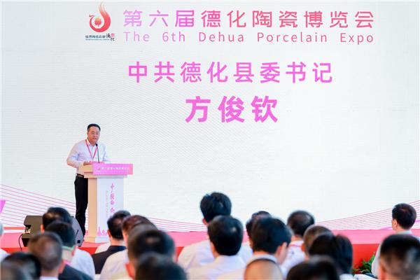 德化县委书记方俊钦在致辞中表示,近年来,德化全力推进陶瓷产业创新转型,奋力向着世界一流迈进。 德化陶瓷日益成为连接传统与现代、东方与世界的文化桥梁。德化瓷博会自创办以来,不仅成长为业界颇具影响力的专业盛会,更成为推动陶瓷文化传承创新、促进国际交流合作的重要平台,期望广大客商能够用好博览会平台,深化交流、扩大合作,实现更大的共赢发展。